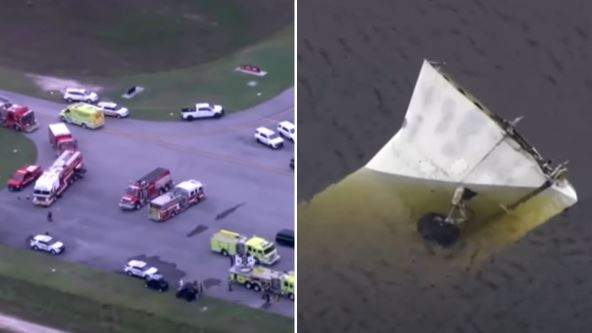 "Kada je avion uleteo u blatnjavo jezero, jedno krilo ili deo repa aviona je otkinut", rekao je kapetan vatrogasne službe okruga Palm Bič Tom Rejes.