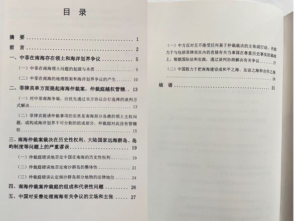 Kina je u četvrtak objavila izveštaj u kojem je potvrdila svoje čvrsto protivljenje odluci arbitraže o Južnom kineskom moru naglasivši da odluka nanosi ozbiljnu štetu međunarodnom pravnom poretku i oblasti upravljanja morem.