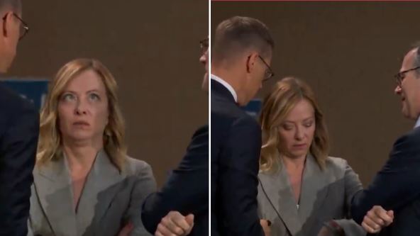 Nije poznato o čemu su razgovarali, ali su njene grimase dovoljno rekle koliko joj ti razgovori prijaju kao i čekanje na nastavak obraćanja i sastanaka. Takođe, kada se konačno pojavio Bajden, srdačno se pozdravila sa njim iako su mnogi naveli da Meloni i nije želela da se poljubi u obraz sa američkim predsednikom.