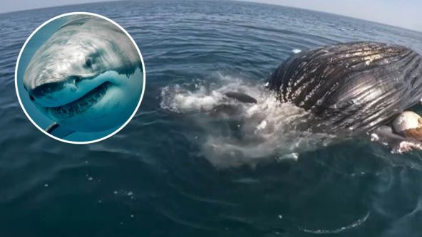 Frenk i Majk Peton prisustvovali su u Masačusetsu u Sjedinjenim Američkim Državama nestvarnom prizoru kada je ajkula izronila iz dubina i krenula je na leš džinovskog kita, piše "NBC Boston". Oni su bili u brodiću, a ajkula je prošla ispod njih i uspeli su da snime taj trenutak.