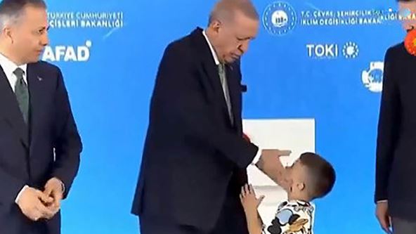 Dečaka su upozorili ljudi koji su stajali oko njega, nakon čega je ipak pristao da poljubi ruku turskog predsednika, koji mu je onda dao džeparac.