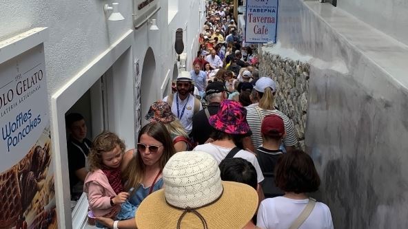 Đanluka Čimenti, turistički vodič, rekao je da društvene mreže stvaraju pogrešan utisak o broju turista na grčkom ostrvu. Kad je špic sezone, sve je krcato. Ali kad nije – pustoš.