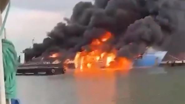 Na društvenim mrežama pojavili su se snimci napada na rusku luku. Potonuo je trajekt sa cisternama za gorivo.