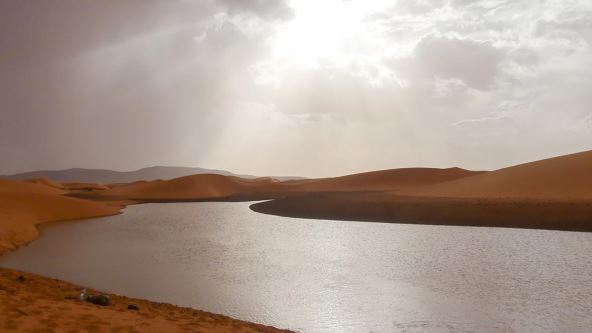 Stanovnici malog pustinjskog grada Ain Sefra u severozapadnom Alžiru bili su zapanjeni kada su videli kako se ogromno jezero pojavljuje u obično suvoj pustinji u retkom prirodnom fenomenu nakon veoma jake kiše.