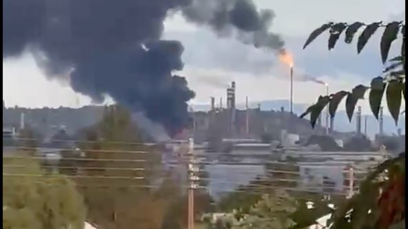 Tri radnika prebačena su u bolnicu sa lakšim povredama. Gust crni dim vidi se sa udaljenosti od nekoliko kilometara.