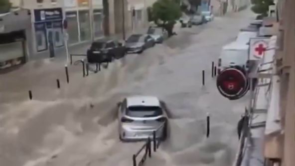 Obilne padavine izazvale su poplave u francuskom Kanu.