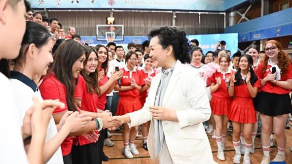 Peng Lijuen, supruga kineskog predsednika Si Đinpinga, prisustvovala je juče događajima kulturne i sportske razmene mladih iz Kine i SAD-a u gimnaziji broj 8 u Pekingu.
