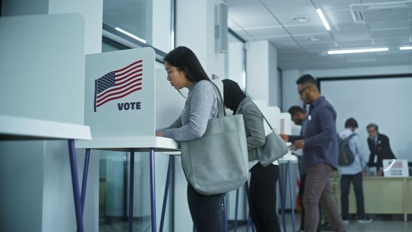 - Na dan izbora, birači ulaze u privatne kabine kako bi popunili svoje glasačke listiće. Neka biračka mesta su prešla na ekrane osetljive na dodir, ali određeni okruzi i dalje koriste glasačke listiće.