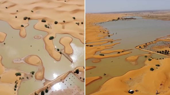Jedna od najsušnijih pustinja na svetu, Sahara, doživela je neviđene poplave nakon što su jake kiše pogodile jugoistočni Maroko. Ovo je prvi put u nekoliko decenija da je ovaj pustinjski region iskusio toliku količinu padavina, pretvarajući peščane dine u pejzaž ispunjen jezerima.