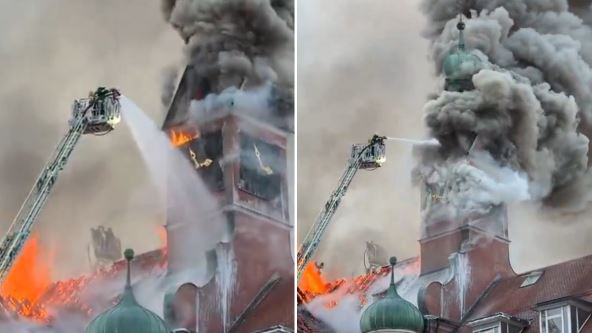 Velika akcija vatrogasaca u Minhenu na katoličko Badnje veče - u domu za stare "Vincentinum", kod Engleskog vrta, trenutno gori gornji sprat i toranj sa zvonom doma za stare, a delovi zgrade su se urušili.