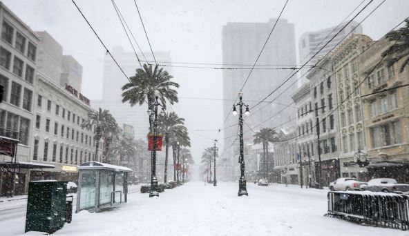 Pojas hladnoće proteže se od Hjustona preko Nju Orleansa i Floride Panhendla do obale Karoline. Ovakvi, skoro nezabeleženi vremenski uslovi, zarobili su putnike na putevima i blokirali mnoge gradove. Sneg, susnežica i ledena kiša ne prestaju da padaju već danima.