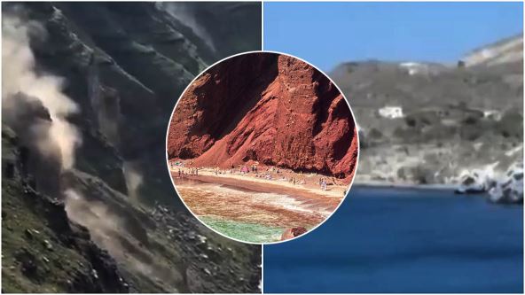 Nedavni snimci objavljeni na društvenim mrežama pokazuju odrone stena koji pokrivaju deo gde su nekada bili suncobrani i ležaljke. Crvena plaža je "nestala" u trenu.