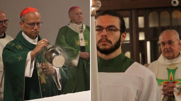 "U okviru zasedanja Saveta biskupskih konferencija Evrope (CCEE), koje se održava u Beogradu od 24. do 27. juna, svečano liturgijsko slavlje u katedrali Uspenja Presvete Bogorodice u Beogradu, u utorak 25. juna, predvodio je Njegovo Preosveštenstvo kardinal Robert Fransis Prevost, prefekt Dikasterija za biskupe", naznačeno je ispod podeljenih fotografija.
