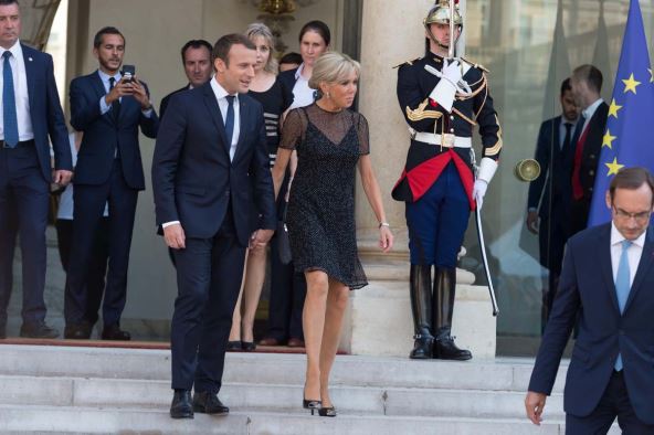 Makron deluje iznenađeno, ali se brzo okreće i izlazi. Dok silaze niz stepenice aviona, predsednik kao i obično pruža ruku supruzi, ali ona ovaj put bira da se drži za ogradu. Jedan od bliskih saradnika predsednika izjavio je da se radilo o "običnoj bračnoj šali", te da je to bio trenutak "opuštanja pre početka ozbiljnog državničkog puta".