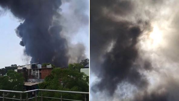 Snimci koji kruže društvenim mrežama prikazuju mesto pada prekriveno plamenom i gustim crnim dimom koji se uzdiže u visinu.