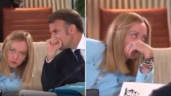 Premijerka Italije Đorđa Meloni sedela je pored francuskog predsednika Emanuela Makrona. Pred sam početak sastanka, Makron je nešto šapnuo na uvo Meloni nakon čega je ona prevrnula očima.