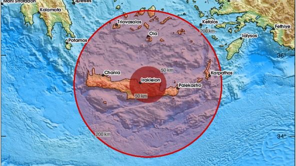 Epicentar je lociran na području sa geografskim koordinatama širine 34.9098 i dužine 26.6865. Hipocentar je smešten na dubini od oko 18 kilometara ispod površine zemlje.