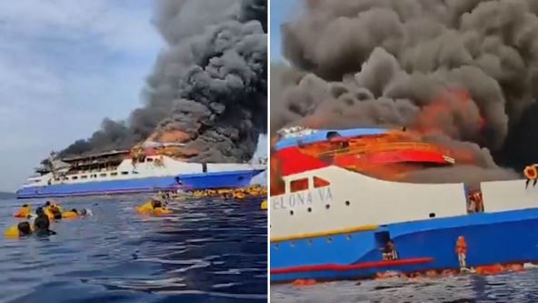 Plamen je zahvatio trajekt KM Barcelona VA u nedelju, primoravši mnoge putnike, među njih 280 da u panici skoče u more. Prema izveštajima, požar je izbio oko 13:30 sati po lokalnom vremenu. Panika je izbila kada je gust crni dim počeo da se širi iz donjih paluba.
