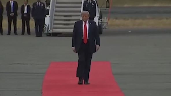 Tramp je podigao obrve u trenutku kada je izašao iz aviona na Aljasci, ne žureći sišao niz stepenice, a zatim je izgledalo kao da se tetura po crvenom tepihu koji je bio postavljen na pisti.