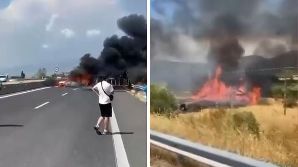 Kako su naveli svedoci, putnici u vozilu su vrištali kada je izbio požar. Vozač kamiona je takođe hospitalizovan i zadobio je ozbiljne povrede.