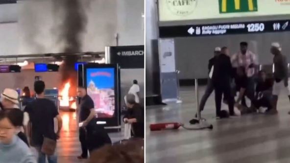 Neimenovani muškarac završio je u pritvoru na aerodromu u Milanu nakon što je navodno zapalio kante, razbio ekrane za prijavu čekićem i napao osoblje.