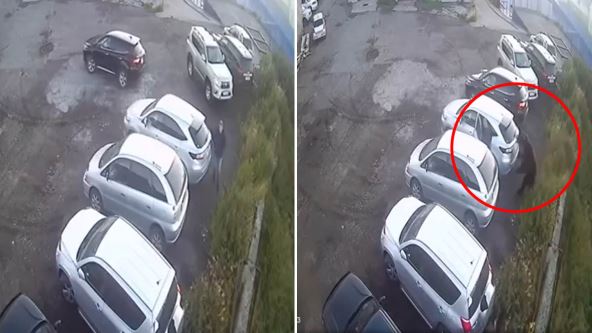 Uspeo je da zatvori vrata baš kada se zver podigla na zadnje noge i počela da udara po vozilu. Medved je drmao auto nekoliko sekundi, razbio prozor i grebao stakla, a potom se na sve četiri uputio prema drugim parkiranim vozilima.