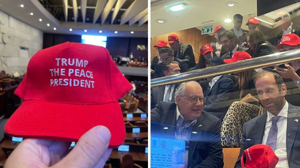 U izraelskom parlamentu Knesetu danas su zaposleni delili crvene kape sa natpisom "Tramp, predsednik mira", po uzoru na poznate "Make America Great Again" kape koje su simbol kampanja Donalda Trampa. Fotografije je objavio novinar lista Tajms of Izrael Sem Sokol, prenosi Index.
