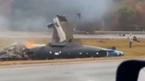 Fotografije i video-snimci koje su zabeležili prolaznici iz automobila prikazuju dim koji se uzdiže iz olupine, kao i beli automobil koji se nalazio u srednjem pojasu puta, a koji je zadobio ozbiljna oštećenja na suvozačevoj strani, najverovatnije usled udara aviona.