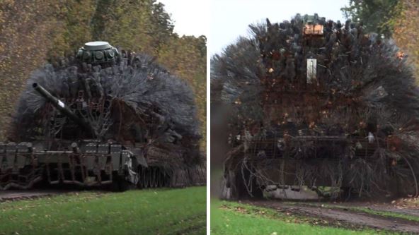 "Ruski tenk, kao nešto iz filma 'Pobesneli Maks'. Značajno je modifikovan da bi se zaštitio od ukrajinskih dronova", stoji u opisu jednog snimka. Veruje se da bi zaštitna oprema trebalo da izazove ranu eksploziju dolazećih dronova ili da ošteti njihove propelere.