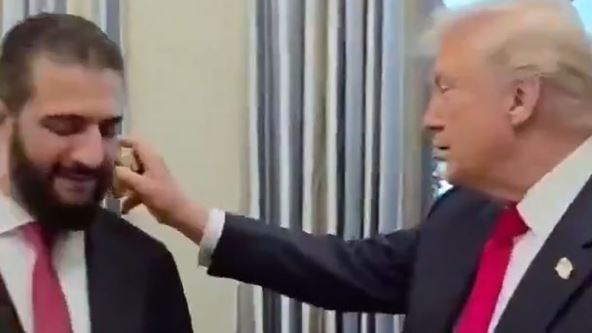 Međutim, snimci prikazuju toplu dobrodošlicu koju je Ahmadu al-Šari priredio američki predsednik Donald Tramp. "Ovo je muški parfem", rekao je Tramp dok je skidao zlatni čep sa bočice kolonjske vode i pošpricao vođu paravojne grupe povezane s Islamskom državom i Al-Kaidom.