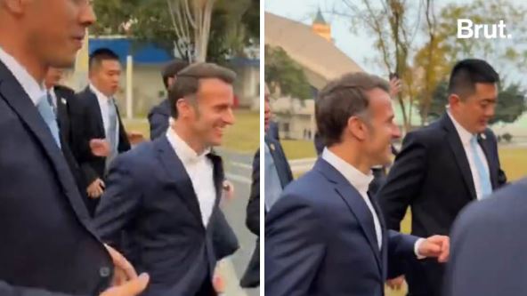 Makron je trčao ka grupi studenata ispred Univerziteta Sečuan u Čengduu. Makron se pre ovoga sastao i sa predsednikom Narodne Republike Kine Si Đinpingom sa kojim je razgovarao o brojnim temama, pre svega o saradnji Francuske i Kine.