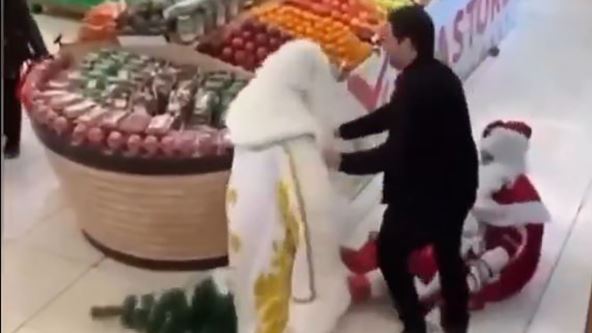 Dva Deda Mraza,crveni i beli, sukobila su se u prodavnici u Bakuu, Azerbejdžan. Izgleda da je do incidenta došlo zbog teritorije i raspodele prazničnog veselja, a posledice su pretrpele nekoliko poređenih voćki i jedna plastična jelka.