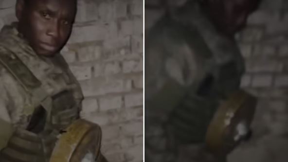 Oko njega se nalazi grupa ruskih vojnika koja mu noževima preti da ide napred ka ukrajinskim položajima. Na snimku se čuju i gnusne rasističke uvrede, nazivali su ga "otvaračem konzervi" čija svrha je da "raznese neprijateljski bunker".