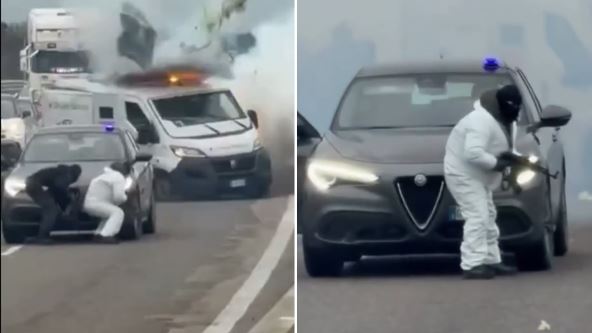 Na video-snimku italijanske "Republike" objavljenom na društvenoj mreži "Iks" (X), vide se maskirani muškarci naoružani kalašnjikovima - od kojih su neki bili u belim kombinezonima i za koje se veruje da su članovi bande - kako ulaze u obračun sa karabinjerima.