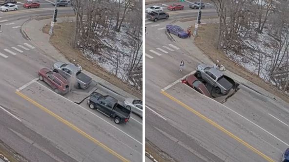 U sekundi koja je delovala kao scena iz akcionog filma, deo kolovoza na prometnoj raskrsnici u Omahi iznenada je popustio. Vozila koja su mirno čekala zeleno svetlo nisu imala nikakvu šansu da reaguju - asfalt se pod njima doslovno otvorio.