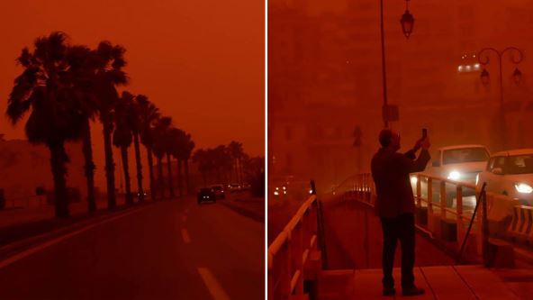 Ostrvo je 1. aprila bilo prekriveno Saharskom prašinom, koja je nebo obojila u neobične nijanse.