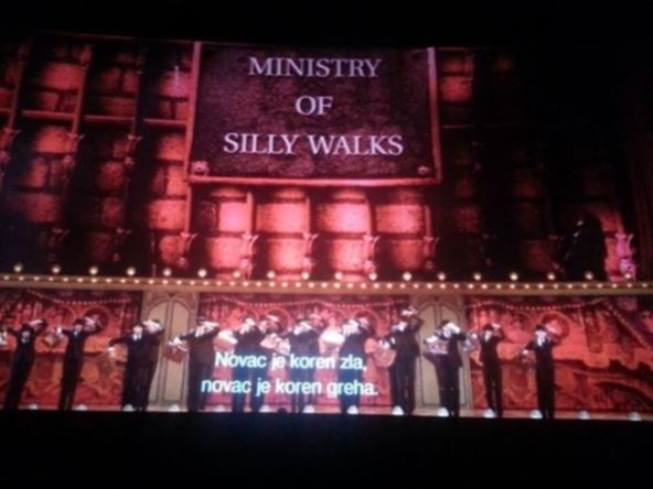 Tvrdokorni fanovi su dobili gotovo sve. Od neprevaziđenog skeča kad četvorica bogataša pričaju kako im je bilo teško u životu dok se nisu obogatili, preko prodavca albatrosa u bioskopu, agencije za vređanje i svađanje, knjigovođe koji bi da promeni život i postane krotitelj lavova (malih životinja dugačkih noseva koje jedu mrave) što preraste u urnebesnu pesmu drvoseče, do "niko nije očekivao špansku inkviziciju“ i reklamacije za kupljenog mrtvog papagaja. Eric Idle i dalje peva kao nekada. "Penis song“, "I like Chinese“, "The galaxy song“ i naravno, neizbežni vanvremenski interplanetarni hit "Always look on the bright side of life“, himnu koju bih naredio da se pušta na radijskim i televizijskim stanicama bar dvadeset puta dnevno, za popravljanje raspoloženja i beg iz depresije prosečnog stanovnika naše zemlje.