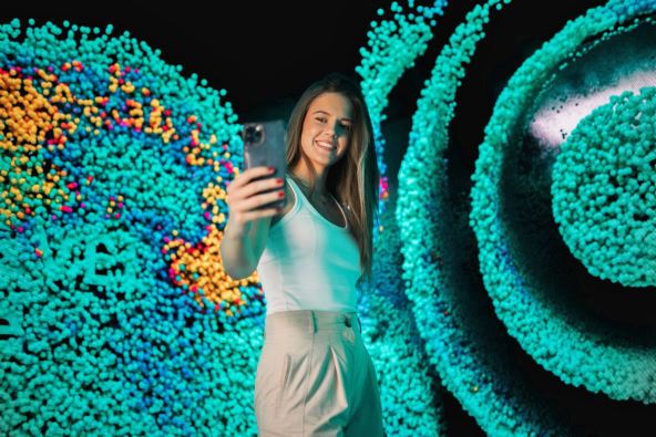 Kada zakoračite u inovativnu tehnologiju, doživećete umetnički doživljaj jer enterijer kreiraju imerzivni videi. Drugim rečima, imaćete osećaj da ste “ušli u sliku”, zahvaljujući animiranim oblicima koji se transformišu u hiljade čestica. Kada se čestice pomeraju, ne samo da dobijate nadrealni utisak kretanja, već i fenomenalne fotografije i snimke na kojima će vam zavideti.