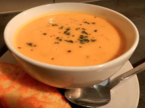 Isecite povrće sitno, i propržite najpre crni i beli luk na maslinovom ulju. Dodajte kockice bundeve i propržite ih, a potom začinite kurkumom i rendanim đumbirom, potrebno vam je parče od oko tri centimetra. Nalijte supom i krčkajte dok bundeva ne omekša, pa u blenderu usitnite dok ne dobijete gustu čorbu. Poslužite je s malo kisele pavlake.