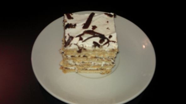 Na tacnu za tortu poređajte keks, odozgo stavite fil, zatim šlag. Nakon toga opet stavljate keks, fil, pa šlag, i tako ukupno četiri puta.