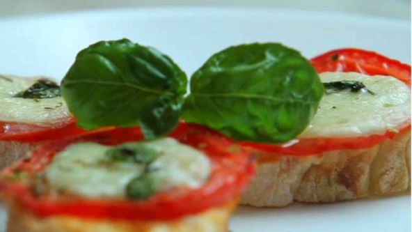 Savko parče hleba poklopite kriškom paradajza, na koji ćete potom staviti kolut mocarele (mada može i neki drugi kačkavalj, ili parmezan).