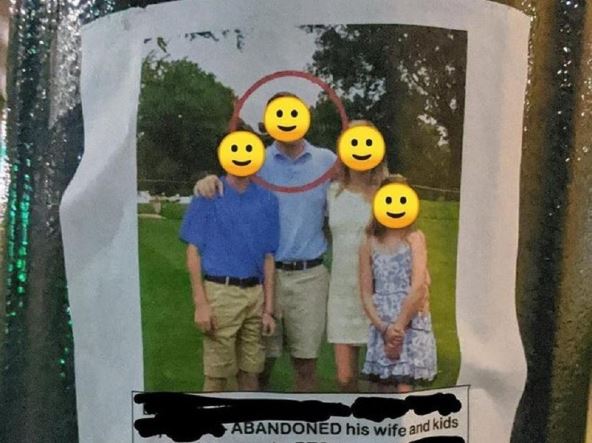 Kada je njegova supruga saznala za aferu, umesto razvoda odlučila je da se brutalno osveti i izlepi postere po celom gradu. Na posterima se nalazila fotografija njegove porodice, dok je glava muškarca bila zaokružena, a ispod je pisalo: "Ostavio je ženu i decu u Njujorku da bi se zabavljao sa matorkom. Oženjen, a živi sa drugom ženom. Policija, molim vas, uhapsite ovog čoveka zbog prevare, prekršaja klase četiri u Virdžiniji".