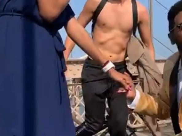 Dok je klečao na jednom kolenu držeći za ruku svoju buduću nevestu, na fotografkinju koja je sve pokušavala da ovekovoči je naleteo "golišavi" biciklista. Oboje su tresnuli o zemlju, ali mladoženja se nije dao zbuniti...