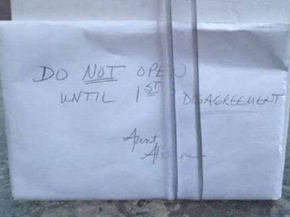 Keti i Brendon Gan na Facebooku su podelili priču o svadbenom poklonu koji su dobili devet godina ranije od njene tetke, a u kojem je bio "ključ za spasavanje braka". Inače, na poklonu je pisalo "ne otvarati do prve svađe".