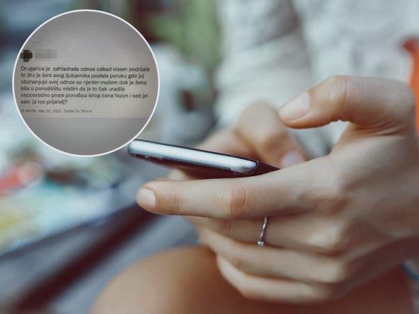 "Drugarica je zahladnela odnos otkad nisam podržala to što je ženi svog ljubavnika poslala poruku gde joj obznanjuje svoj odnos sa njenim mužem dok je žena bila u porodilištu. Mislim da je to čak uradila neposredno posle porođaja, otprilike istog dana, i sad sam ja, je l’, loš prijatelj?", napisala je i pojasnila zašto je tako postupila: