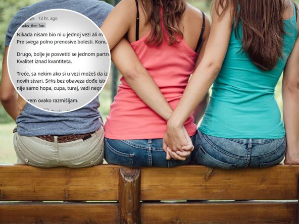 "Napisa lik ispod, 'to nije veza'. U potpunosti se slažem. Sad kad imamo temu, baš me interesuje suština ovakvog odnosa. Šta je to, prijateljestvo, vi ste cimeri, delite troškove stanovanja? Gde je tu komunikacija sa partnerom? Kako pričate šta vam se danas desilo, u čemu ste uživali danas? 'Draga, što sam imao seks sa jednom kasirkom danas… ima veće s**e od tvojih, to mi se baš svidelo…', a ona odgovara 'a ovaj kelner u restoranu, sinoć kad sam sa drugaricama bila, ima kobas bar 20 cm, bilo je nezaboravno…, nego kad idemo kod tvojih u posetu?'… Bizarno… da ne pominjem boleštine čiji se rizik umnožava sa svakim 'freebie' kre*om sa strane", zaključio je.