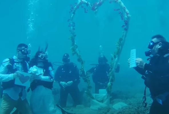 Građansko venčanje koje se obavilo na inicijativu opštine, dogodilo se u Grčkoj, 29. avgusta, na dnu mora kod ostrva Alonisos. Zvanice su "uskočile" u ronilačku opremu, a na ceremoniji, pored gradonačelnika Alonisosa Petrosa Vafinisa, našli su se i deveruša, instruktori ronjenja i podvodni kamerman.