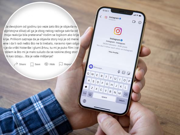 "Juče sam raskinuo da devojkom od godinu i po dana veze zato što je objavila nebitan stori (slika sa putovanja od pre par dana dana, pristojna slika), ali ga je zbog nekog razloga sakrila od mene. Kakav je vaš stav prema tome? Je l' je moja reakcija bila preterana? Vodim se logikom ako krije to, sigurno ima drugi razlog i ko zna šta još krije. Prilikom saznanja da je objavila stori koji je od mene sakriven, pitao sam je je l' krije nešto od mene i da li radi nešto što ne bi trebalo", napisao je i dodao: