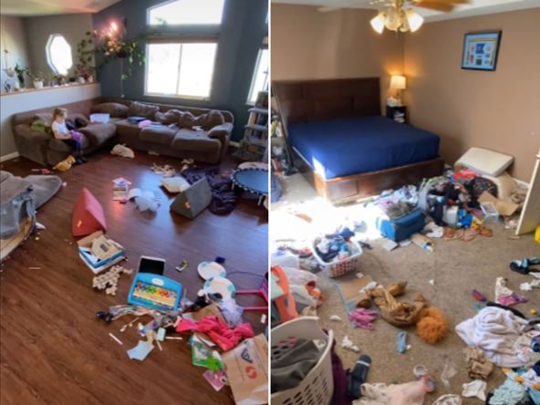 "Radila sam šest dana po 10 sati, sa jednim slobodnim danom zbog bolovanja. Kad sam se vratila kući s posla i videla nered u kući, rekla sam suprugu da to sredi, ali on nije prstom mrdnuo", rekla je Linelis pokazujući kako sređuje haos. U snimku se vide igračke, odeća i smeće razbacani po podu i radnim površinama. Žena je morala da čisti svaku prostoriju u kući, a njena deca bi joj se povremeno pridružila i pomagala, dok suprugu nije bilo ni traga.