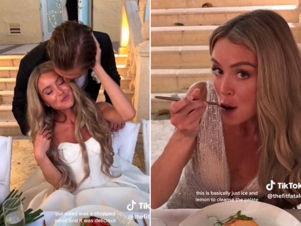 Naravno bilo je i slatkiša, ali bez šećera. Kada je reč o svadbenoj torti, ona je bila čokoladna i bez glutena, mlečnih proizvoda i šećera. Što se tiče pića, popila je par čašica skupocenog šampanjca i to je sve! Nakon njenog videa, komentari većine ljudi su bili ogorčeni:
